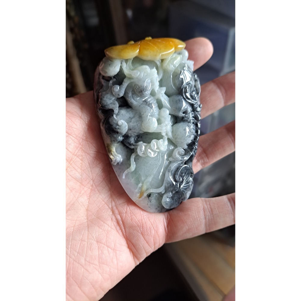 逸品軒~天然緬甸玉A貨-R2170-黃翡烏雞雙麒麟墜子/手把件