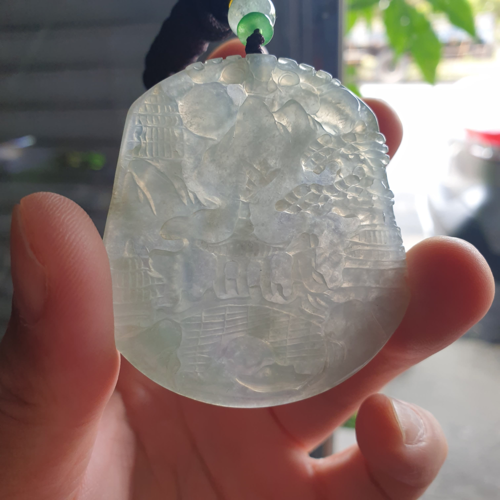 逸品軒~天然緬甸玉A貨-R2225-冰玻種山水貴人墜子(附亞瑟證書)