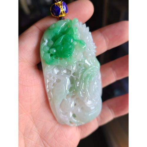 水頭好,白底帶陽綠。顏色清爽漂亮,立體鏤空雕。