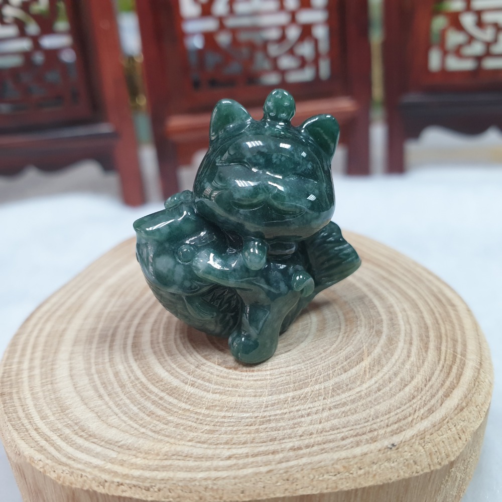 逸品軒~天然翡翠A貨-O0446-瓜料翡翠貓+魚小擺件