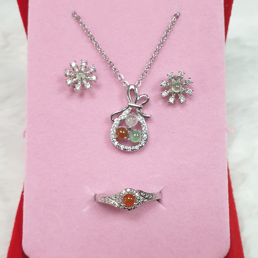 逸品軒~天然緬甸玉A貨-Z6801-翡翠飾品三件套組