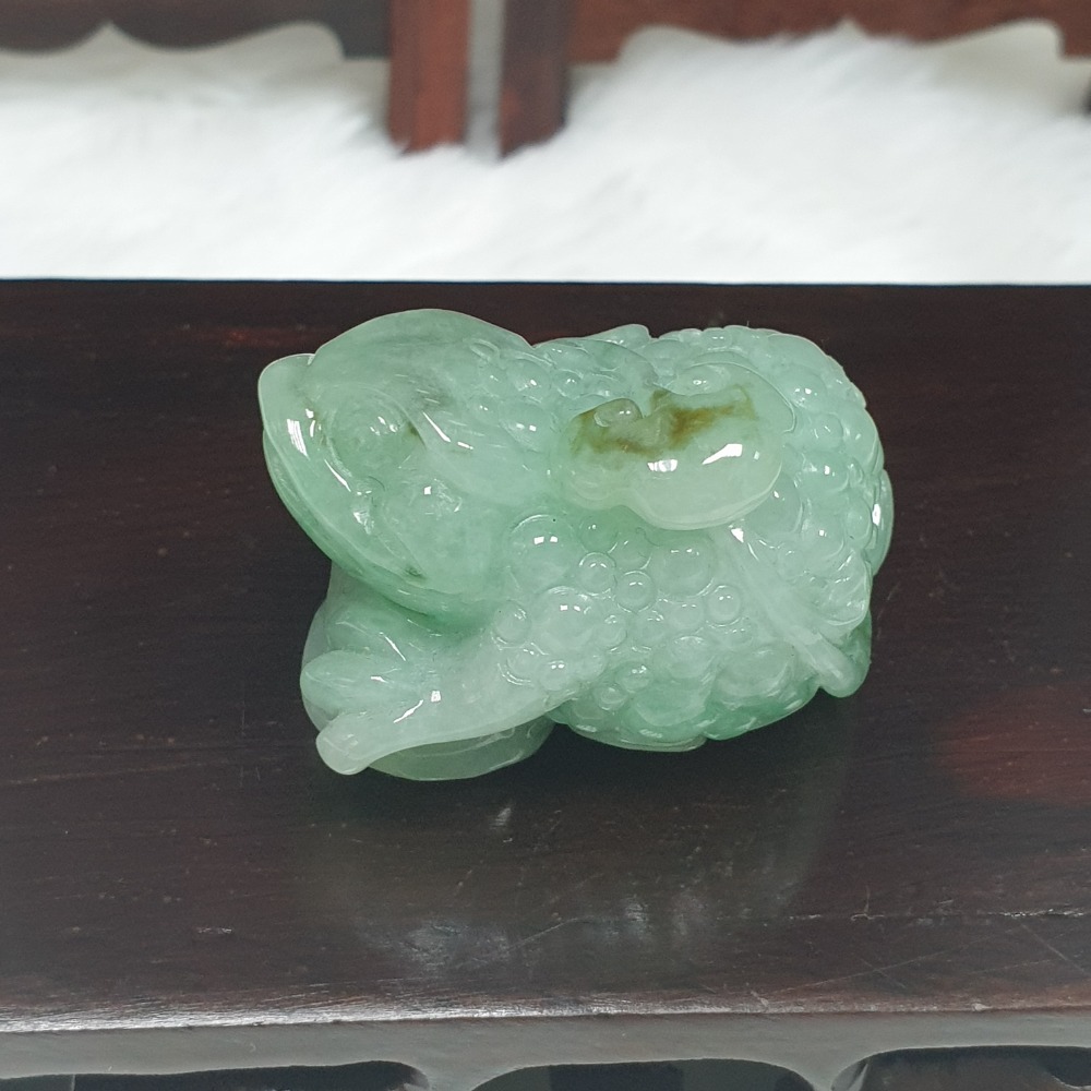逸品軒~天然緬甸玉A貨-O0487-淡綠三腳蟾墜子/小擺件 長37.2mm寬26.1mm厚25.1mm 💰售價2980