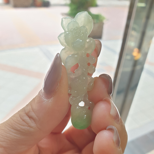 逸品軒~天然翡翠A貨-Z6935-冰糯帶綠蓮花墜子