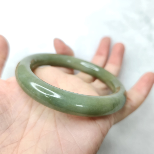 逸品軒~天然緬甸玉A貨-B1688-油青圓骨鐲