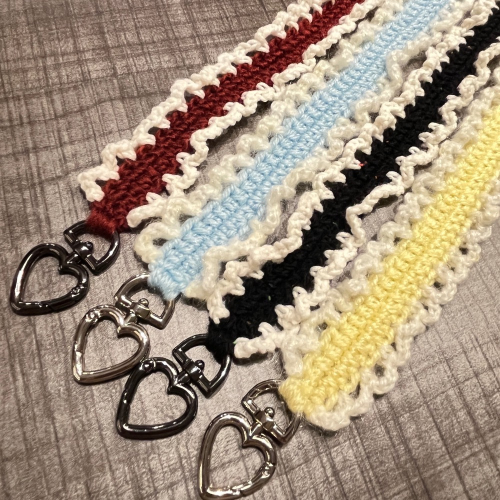 Jenny’s good life 手作毛線鏤空波浪花邊手機背帶 手機繩 手機掛繩 包包背帶