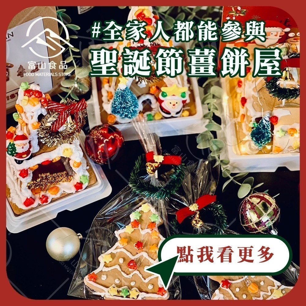 配 件:薑餅、糖果包、飾品包、緞帶、蛋白糖霜、雪花透明盒、製作說明書。