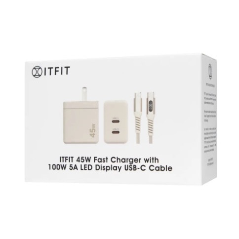商品名稱:ITFIT 45W 雙孔超快充組 - 米 (附充電器+100W LED Type C線)