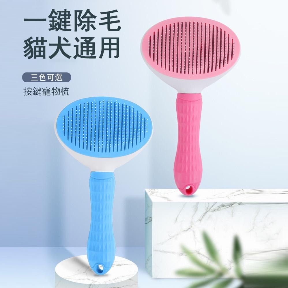 6019📌現貨📌一鍵按壓秒清毛 寵物除毛梳子 脫毛梳 防滑手柄 貓狗針梳器 舒適梳毛刷