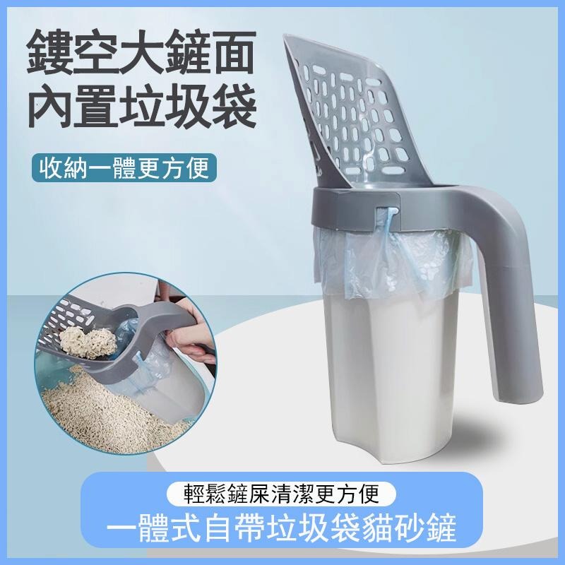 6005🏆現貨🏆貓屎鏟套裝 寵物拾便器 可拆卸便攜塑料 一體式自帶垃圾桶貓砂鏟 鏤空大鏟 鏟屎便捷 收納方便