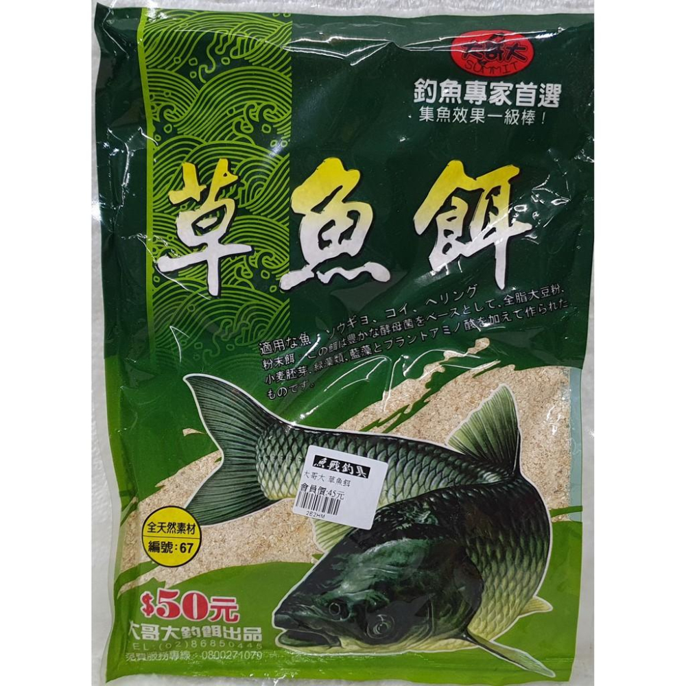 大哥大 草魚餌 __________________________________________ 本賣場熱銷商品皆為現貨! 熱銷商品24小時快速出貨! 魚戰釣具由池釣界名人基哥經營,誠信可靠! 關注魚戰釣具,可立即更新基哥最新產品。