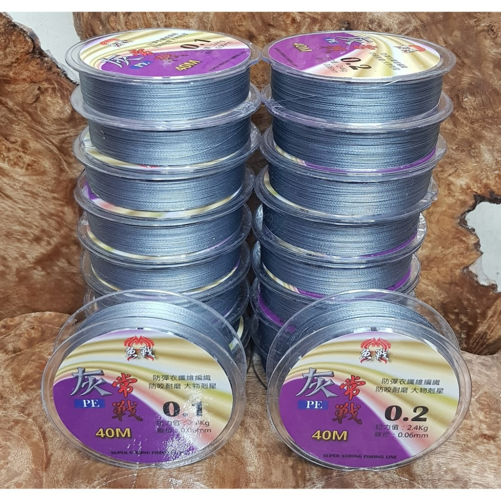 魚戰釣具要出釣魚線囉! 防彈衣纖維編織灰常戰PE線,拉力直令人驚嘆、無延展性、柔軟滑順超耐磨性, 本來是為釣路亞量身訂做,但是我們拿來釣福壽卻發現效果極佳,目前只有進貨 0.1-0.2,因為其實這就非常夠用了! 基哥最近也拿來釣6-6大碑的鯽魚, 在大家咬度都不好的情況下,一節還是可以釣快30斤。 PS.0.2號的標籤標示錯誤,線徑為0.08mm 拉力值:4.5KG 增加以下號數 0.3號 線徑為0.10mm 拉力值:5.4KG 0.4號 線徑為0.11mm 拉力值:6.8KG