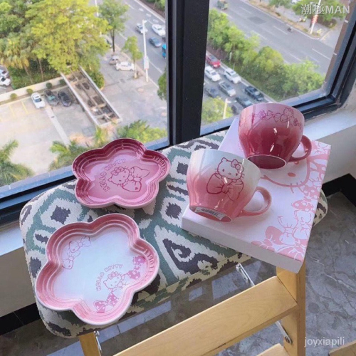 正品 法國Le creuset 聯名 酷彩Hello Kitty吉蒂貓杯碟四件餐具套裝咖啡杯 盤子☕️