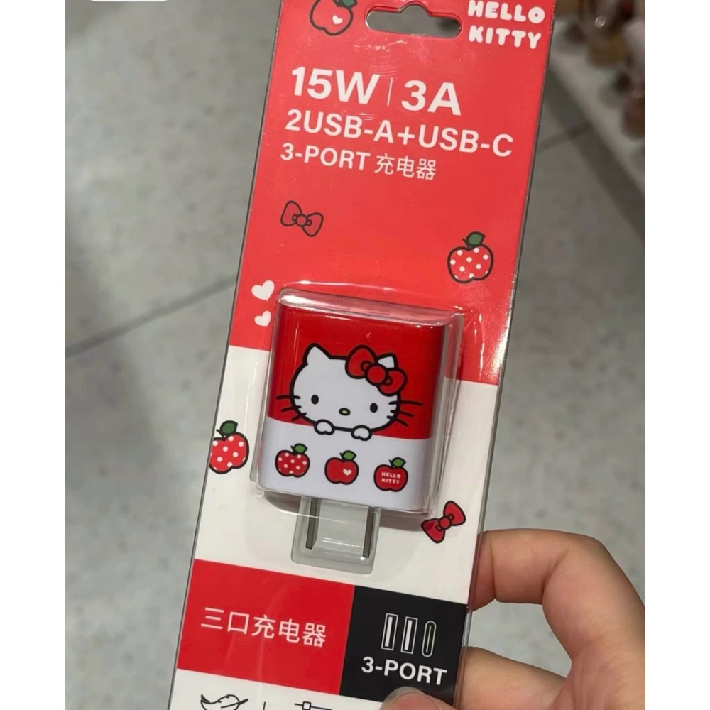 正品 Hello kitty15W三口充電器2A+1C充電插頭 適用蘋果安卓 插頭🔌
