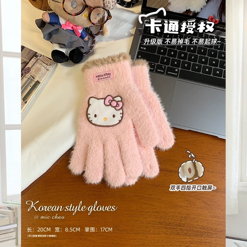 正品 Kitty手套 秋冬季騎行保暖防寒針織毛線可觸屏 冬天毛絨五指手套🧤