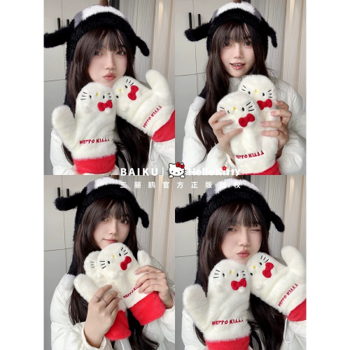正品 kitty手套 2025新冬可愛毛絨加厚保暖禦寒防風全包