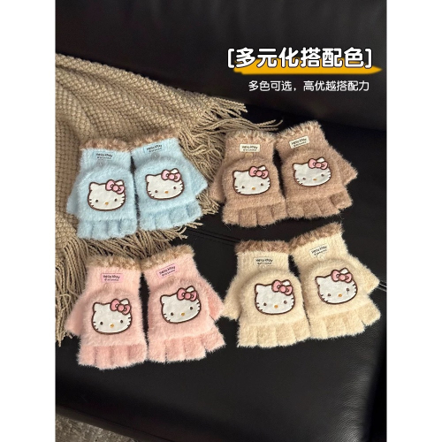 正品 kitty手套 秋冬季騎行 保暖防寒風針織毛線可觸控螢幕 成人五指 手套🧤