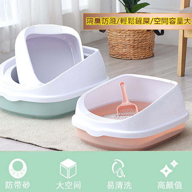 商品介紹:大尺寸開放式貓砂盆(附貓砂鏟)讓貓砂不外濺,更懂主子的心~