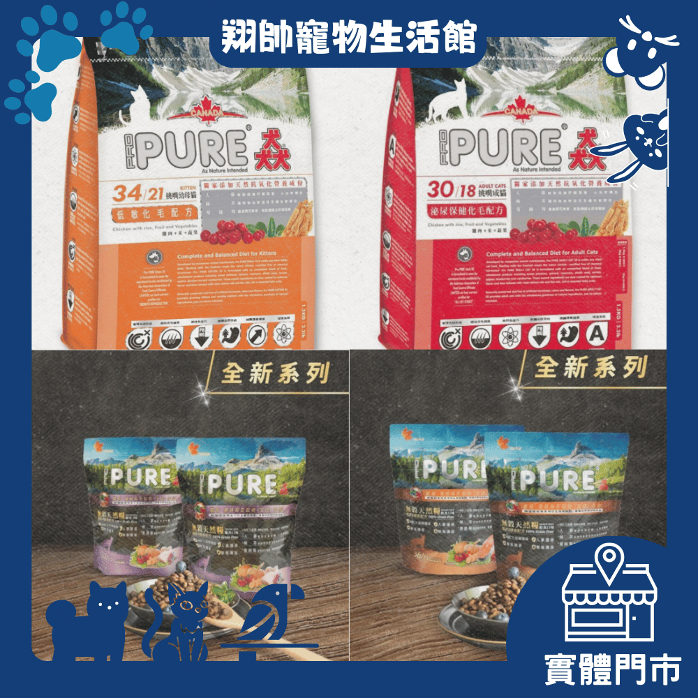 實體門市|猋PURE|挑嘴幼母貓|挑嘴成貓|化毛飼料|貓飼料|無穀飼料|翔帥寵物生活館
