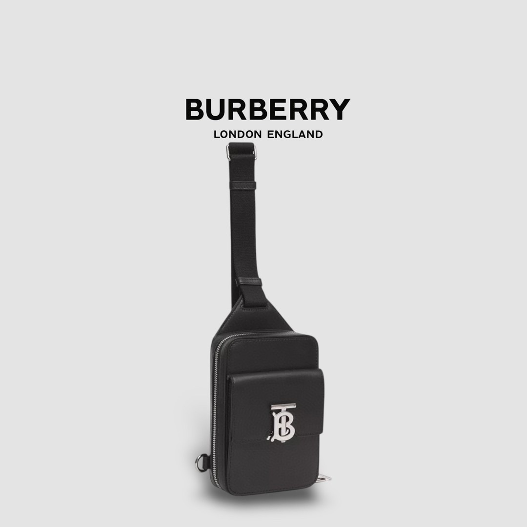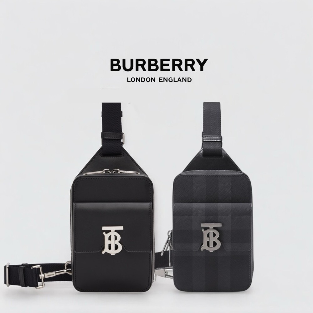 👜Burberry Leather TB Monogram Pouch Crossbody Bag 黑色拋光皮革TB金屬字樣小袋|黑色|炭灰格紋|手機包|輕便小包|隨行包|斜肩包|肩揹包|再生皮革|男女通用款式