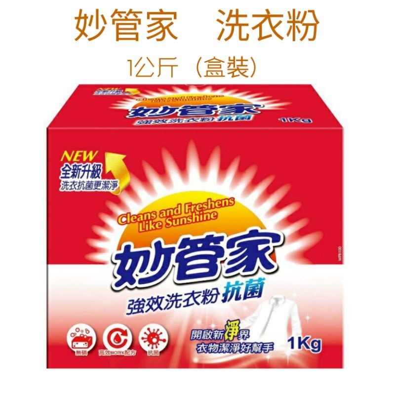 妙管家 強效洗衣粉 抗菌(1公斤)盒裝(超取最多4盒)