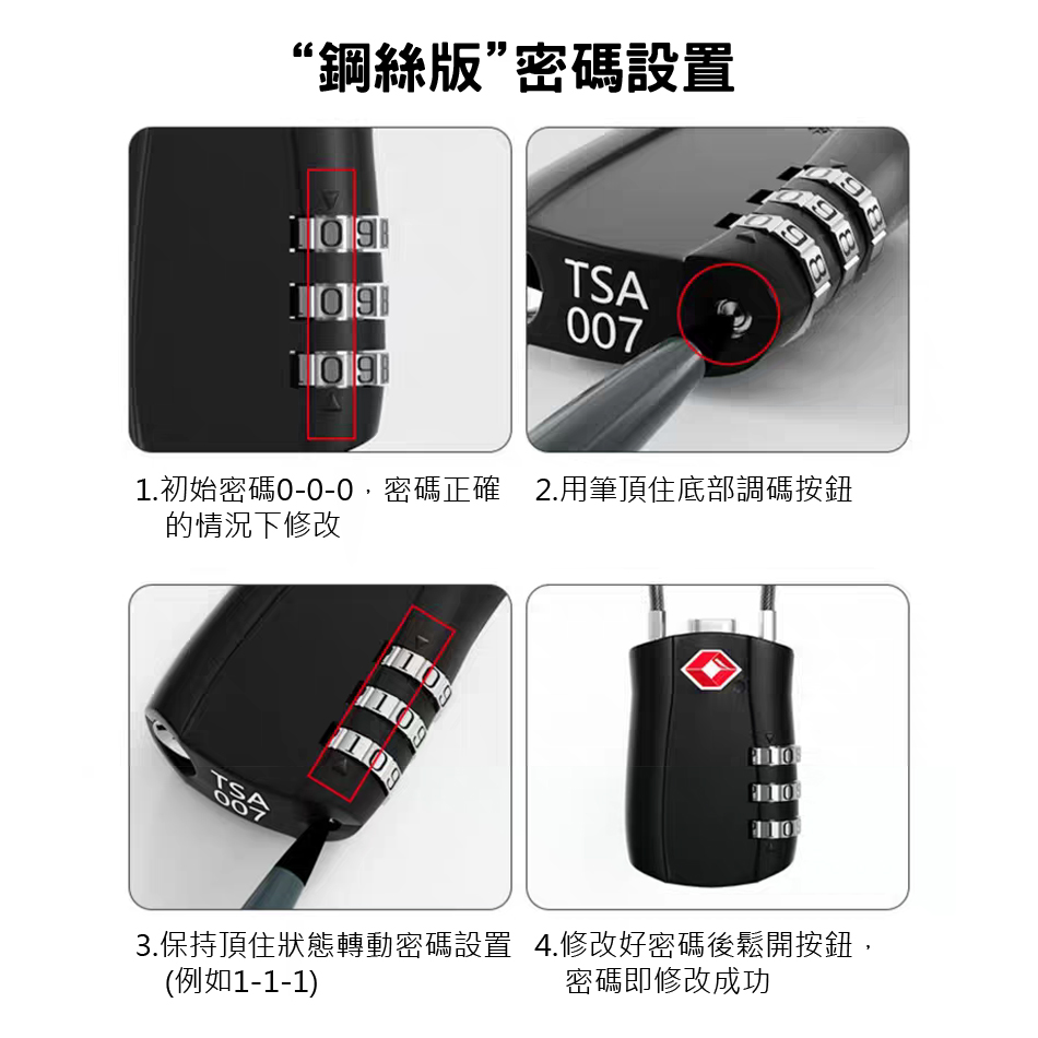 台灣海關密碼鎖 TSA007 密碼鎖 海關鎖 鋼繩鎖 行李箱鎖 健身房鎖 旅行鎖 出國行李箱防盜鎖 登機旅行用品