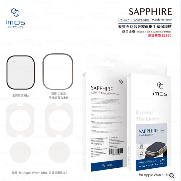 imos 鈦合金框 ( CNC 精雕霧面 ) & 藍寶石螢幕貼