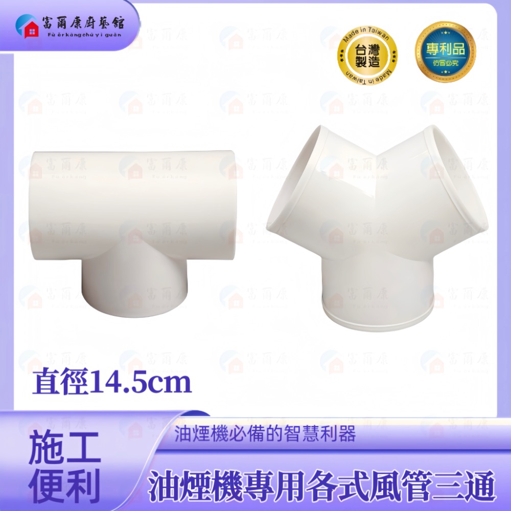 【富爾康】白色塑膠風管T型三通Y型三通璇接45度彎頭/90度連接鋁風管鋁風管接頭通風管接頭PVC排油煙機