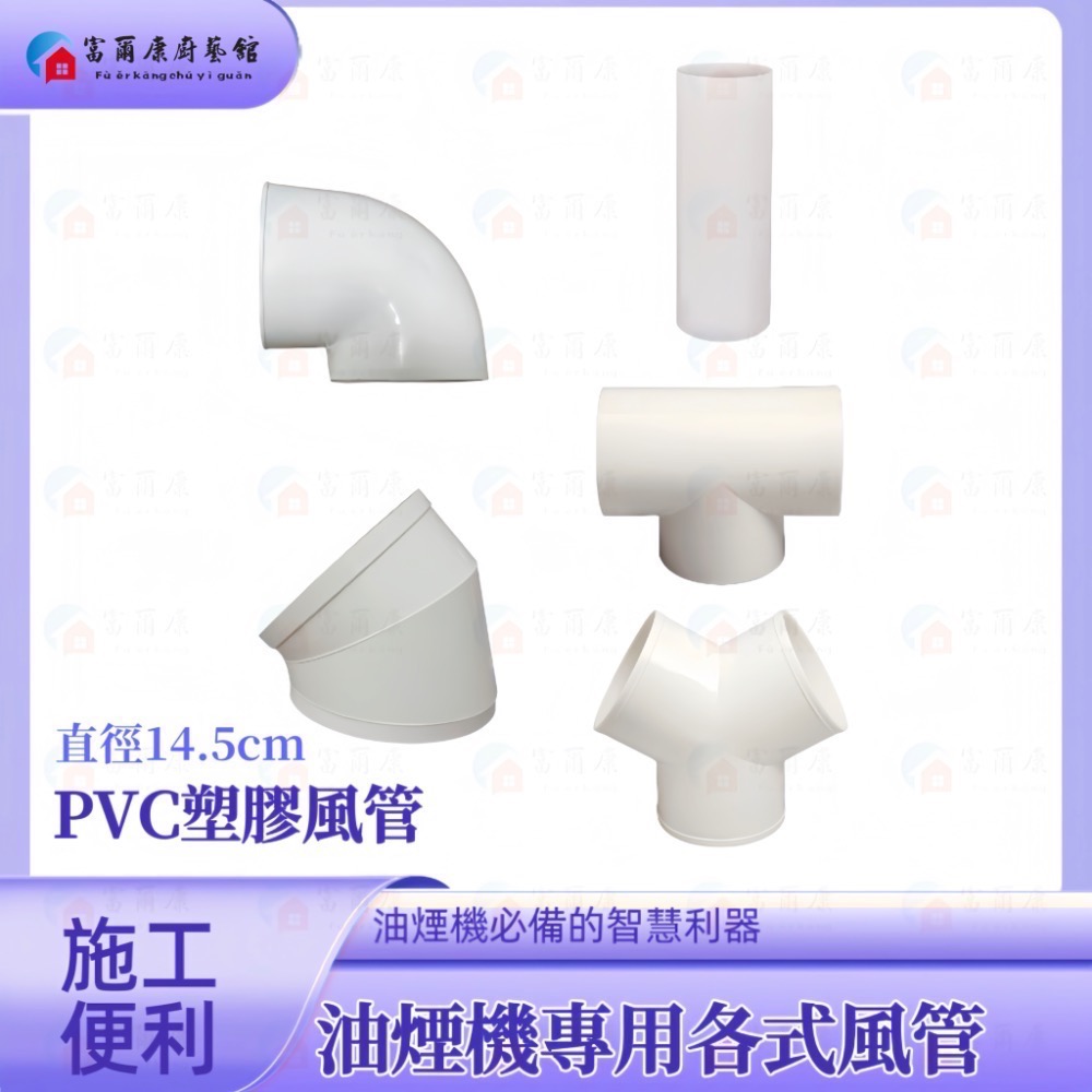 【富爾康】白色塑膠風管45度彎頭/90度彎頭/直管6''防鳥接頭連接鋁風管鋁風管接頭通風管接頭PVC排油煙機