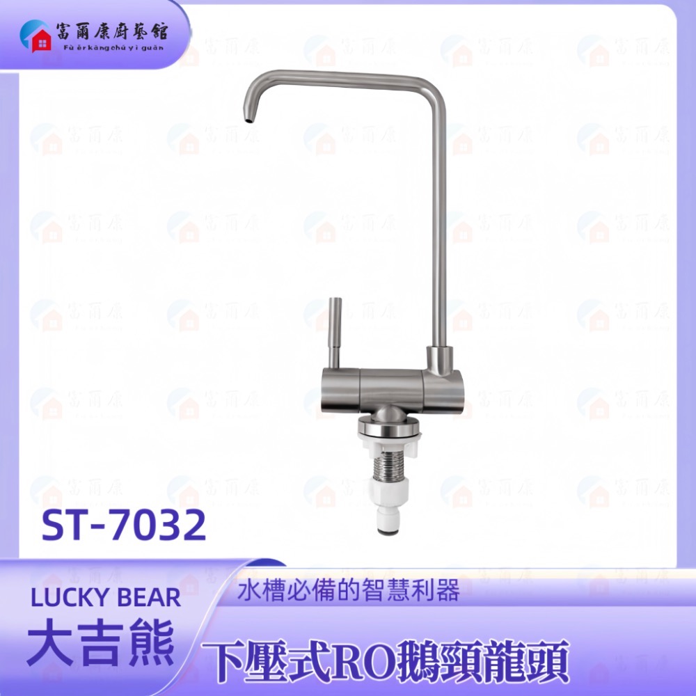 【富爾康】LUCKYBEAR大吉熊ST-7032下壓式RO鵝頸檯面式水龍頭304不銹鋼水龍頭三角凡爾角閥