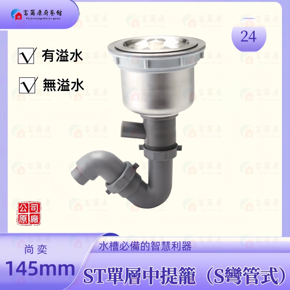 【富爾康】免運 尚奕•14.5水槽配件中提籠不鏽鋼防臭防蟑有無溢水口流理台落水頭洗菜台水槽專用塑膠提籠美式提籠全套145