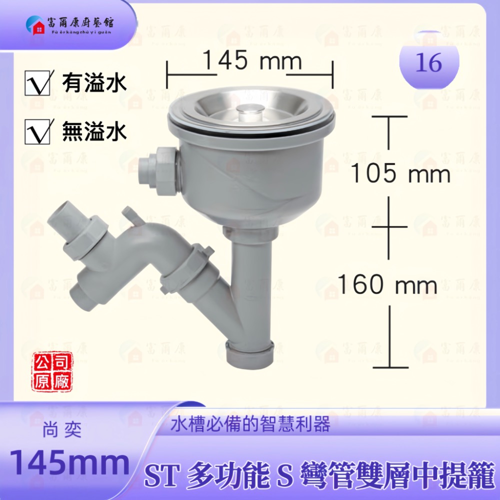 • ST145多功能S彎管雙層中提籠16無溢水 ST145多功能S彎管雙層中提籠16無溢水