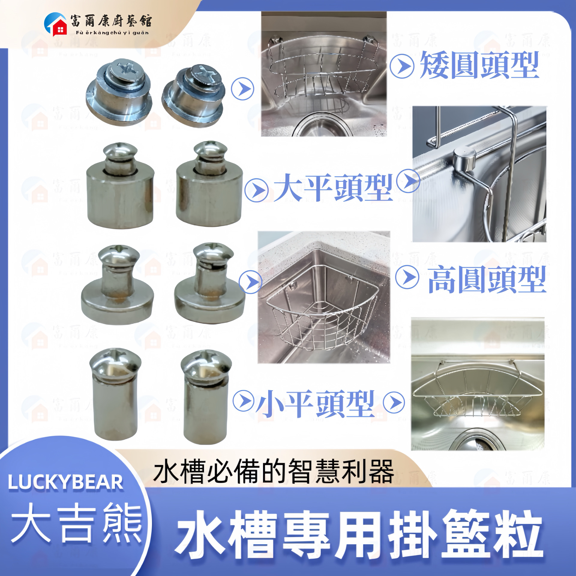 【富爾康】MIT•大吉熊LUCKYBEAR固定頭螺絲不銹鋼提籠塑膠提籠配件水槽配件止滑矽膠粒防滑粒掛籃粒掛粒