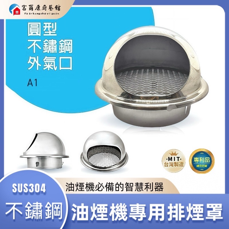 【富爾康】台灣製造•4" 5" 6" A1圓形不銹鋼外氣口小可愛平面外氣罩方型排煙罩不銹鋼通氣罩換氣口換氣罩小金剛半圓