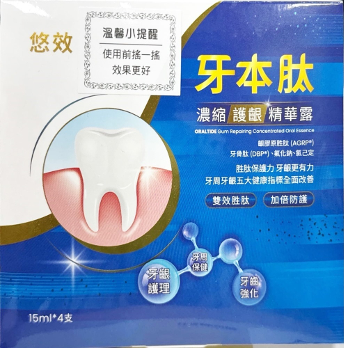 齦膠原胜肽(AGRP®)、牙骨肽(DBP®)、氟化鈉(Sodium Fluoride)、氯己定二葡萄糖酸鹽