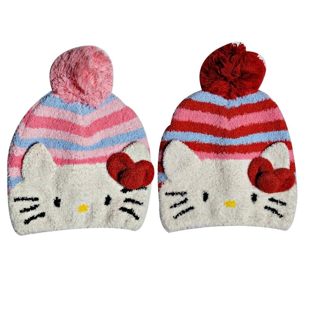 ● Hello Kitty 凱蒂貓保暖禦寒蝴蝶結兒童毛帽。