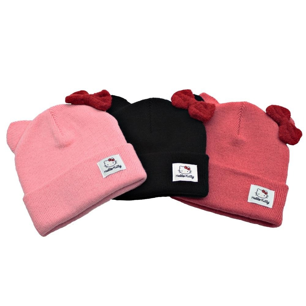 ● Hello Kitty 凱蒂貓保暖禦寒反折蝴蝶結耳朵織標兒童毛帽。