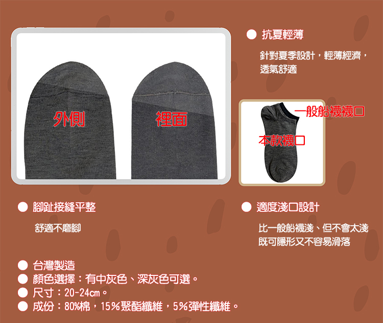 三合豐 ELF, 女性船襪/隱形襪, 精梳棉Y跟設計防脫落淺口 款