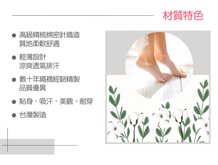 採精梳棉及密針織造,柔軟舒適,透氣排汗。