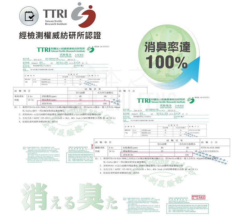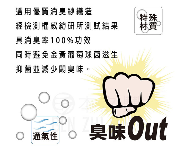 ● 使用福懋消臭紗織造,抗菌消臭,減少異味,效能耐久,耐水洗。