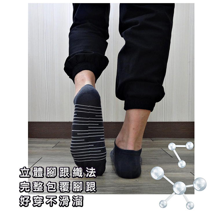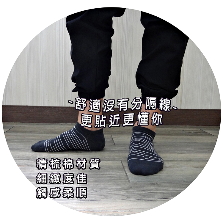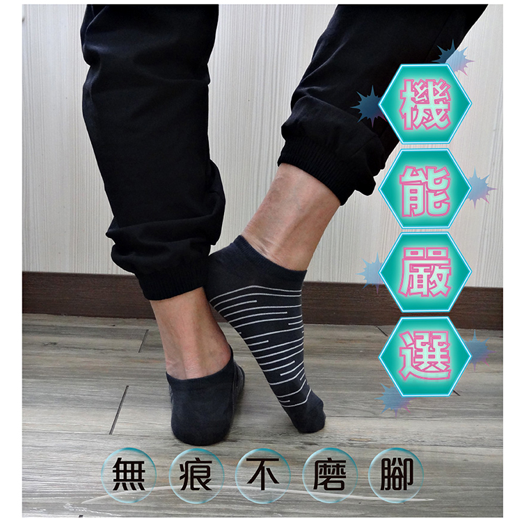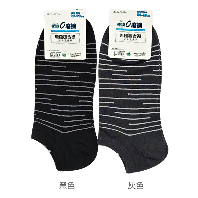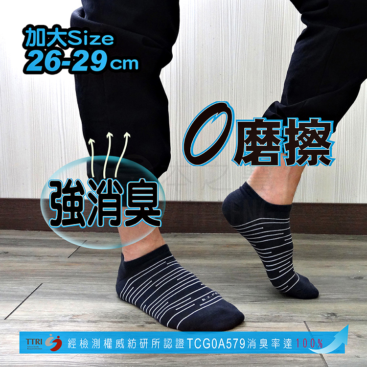 ● 加大尺碼條紋精梳棉抗菌消臭腳趾無縫縫合船襪。
