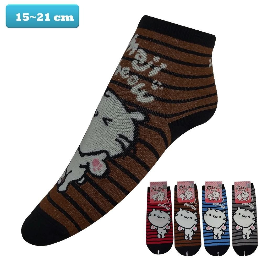 ● 麻吉貓 majimeow 棉質麻吉貓橫條紋小腳印兒童短襪。