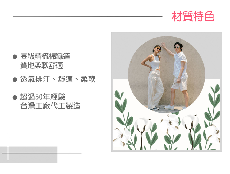 ● 精梳棉材質,柔軟觸感,透氣排汗,柔軟舒適。