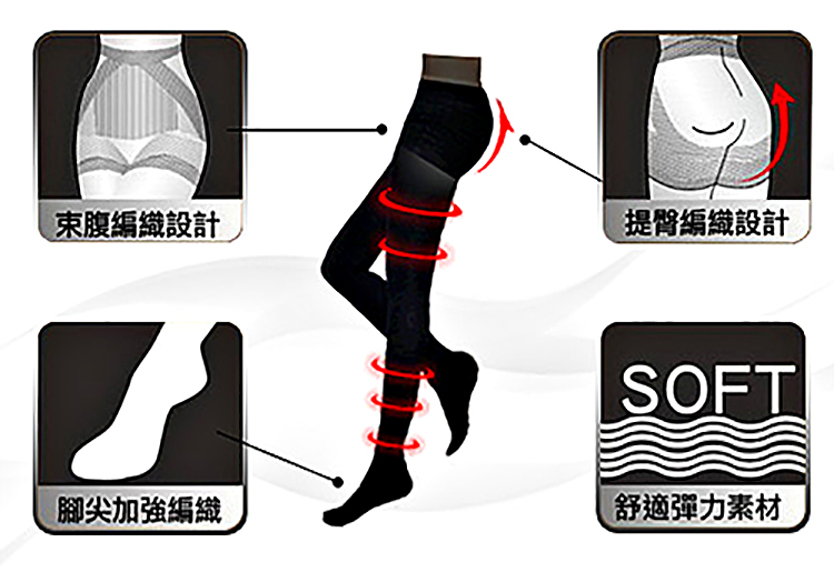 ● 臀部立體提高特殊設計,3D強化塑腹提臀,顯現好身材。