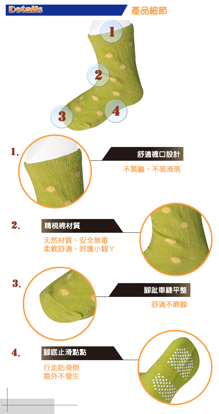 ● 襪身上織有圓點點圖案,讓寶寶也可以很普普風,穿著可愛、活潑好看。