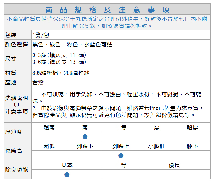 ● 尺寸選擇:0-3歲(襪底長 11 cm),3-6歲(襪底長 13 cm)可選。