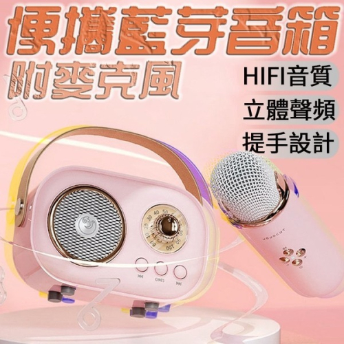 附麥克風+小型藍牙音箱 家庭KTV卡拉OK話筒音響一體麥克風K歌音箱 無線麥克風