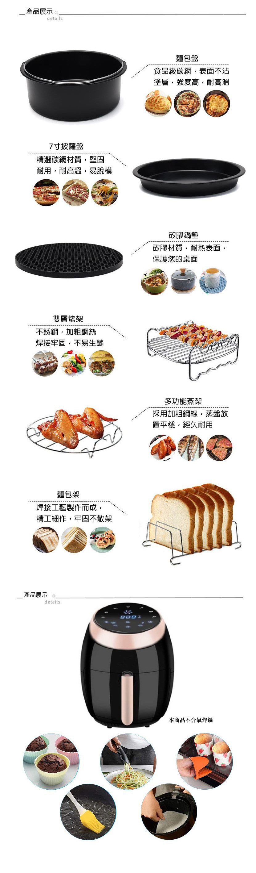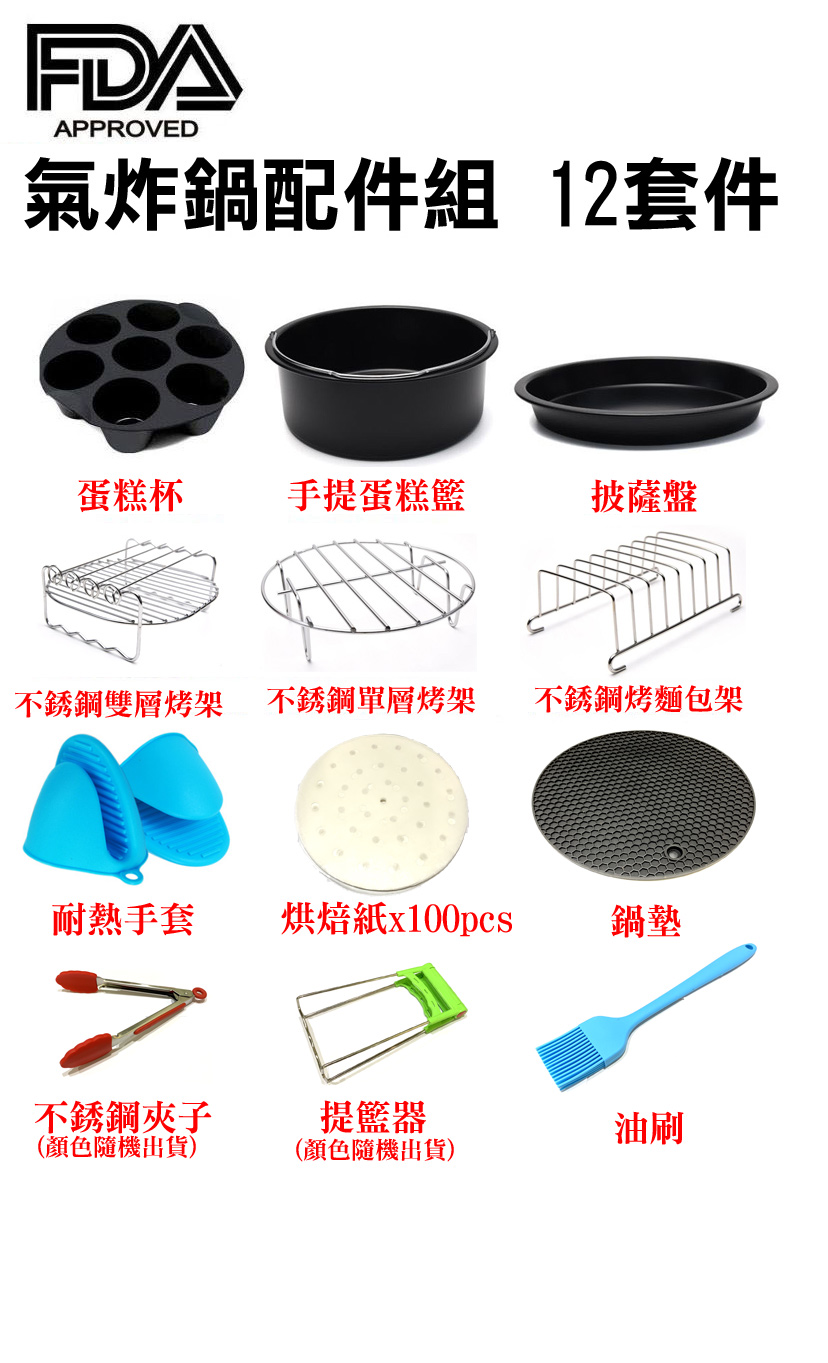 FDA 7吋氣炸鍋配件12件套 適用3.2L-5.5L通用款 SGS認證 |