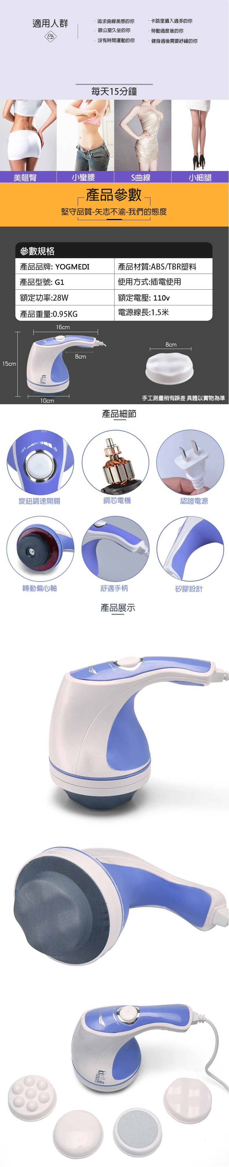 YOGMEDI 功多能推脂機/附多種接頭/多功能電動美體儀/小懶甩脂機大腿小腿腹部電動按摩器棒 |