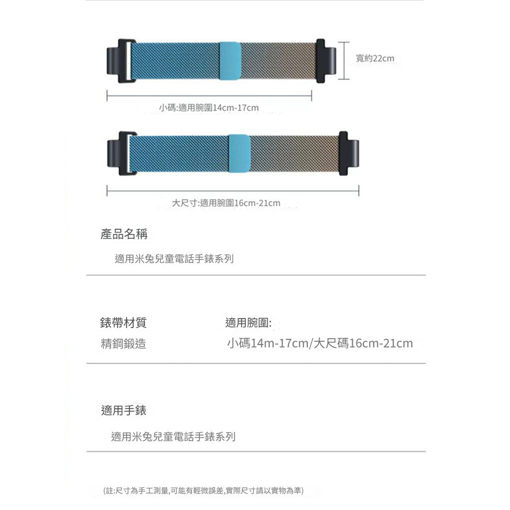 酷黑 寬約22MM 長度:14~17CM 適用:米兔5C/6C/C7A、小米兒童手錶