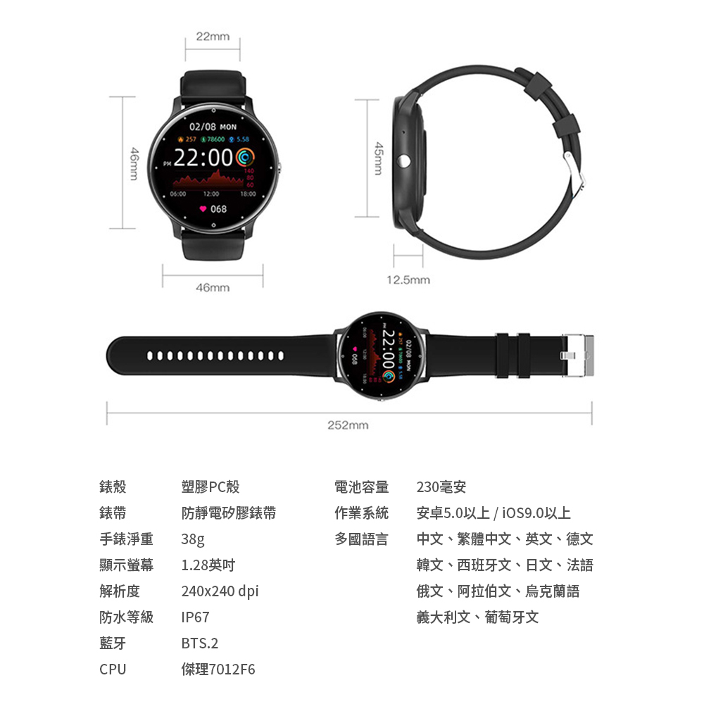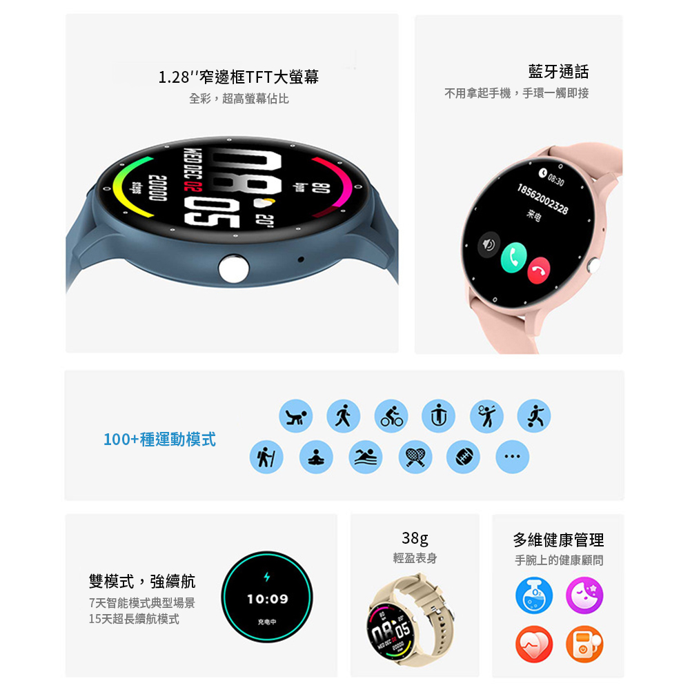 黑色 腕帶材質:矽膠 屏幕尺寸:1.28英吋 line通話:支援